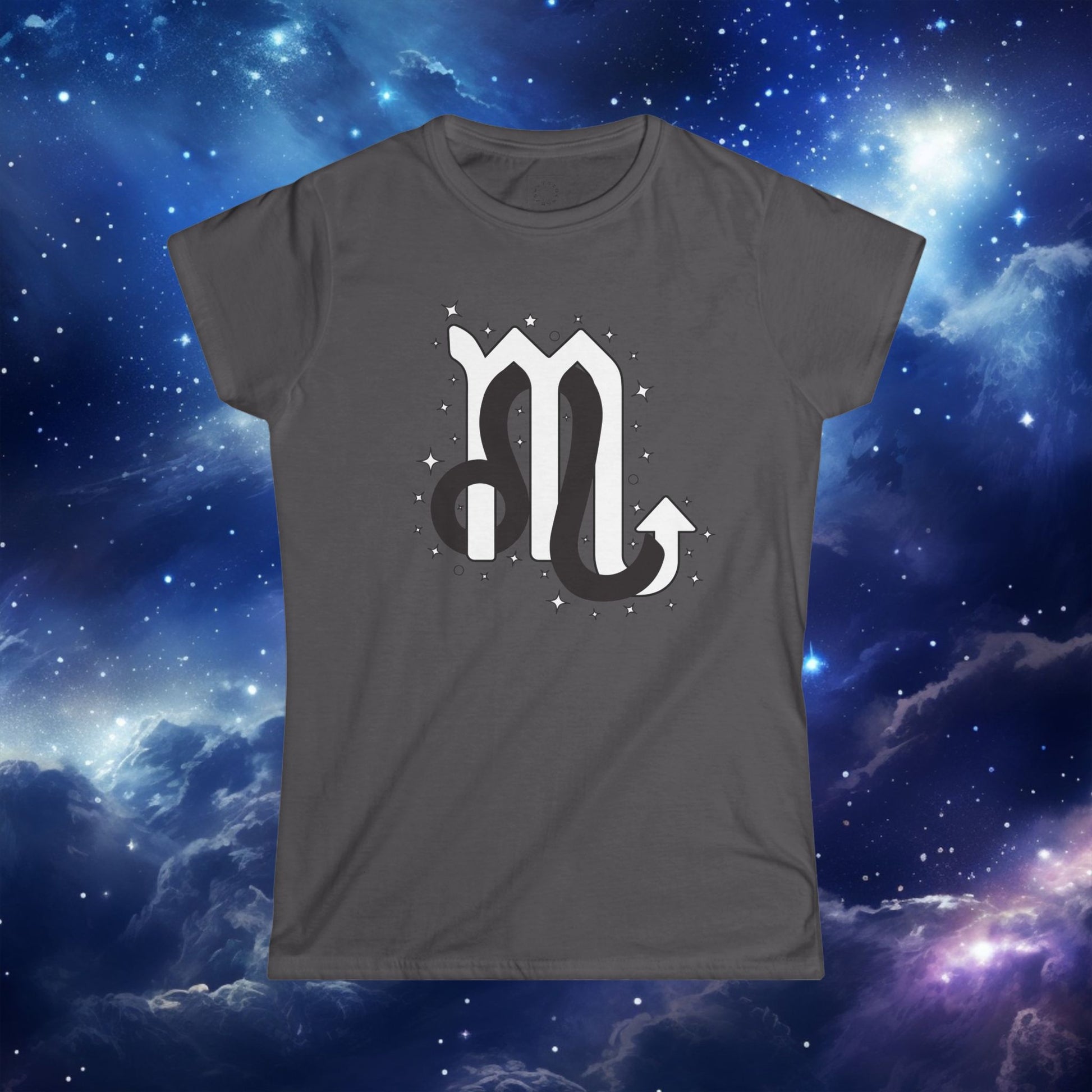 Astrology Zodiac Women's Softstyle Tee Leo and Scorpio with Love Description on Back