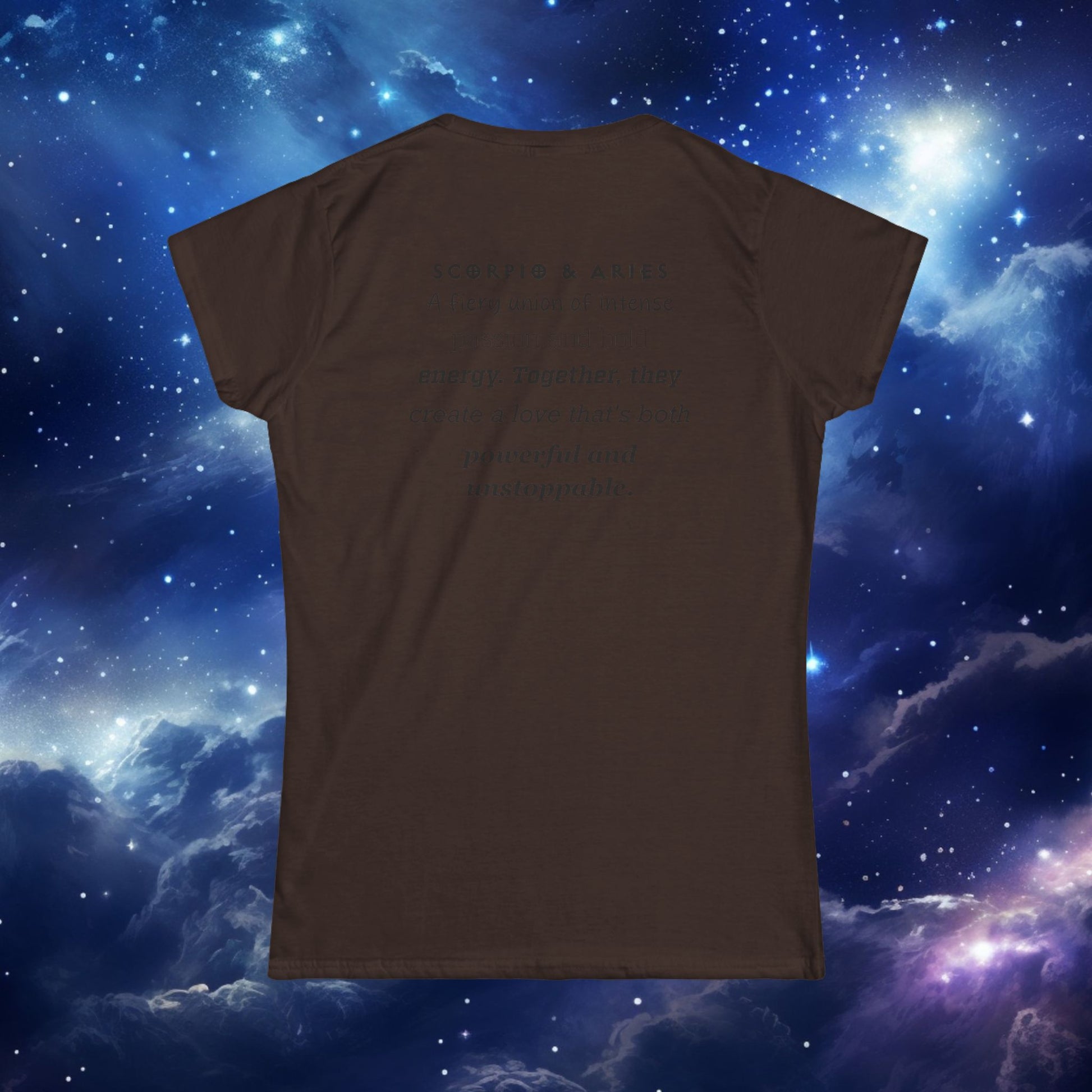 Astrology Zodiac Women's Softstyle Tee with Scorpio and Aries and Love Description