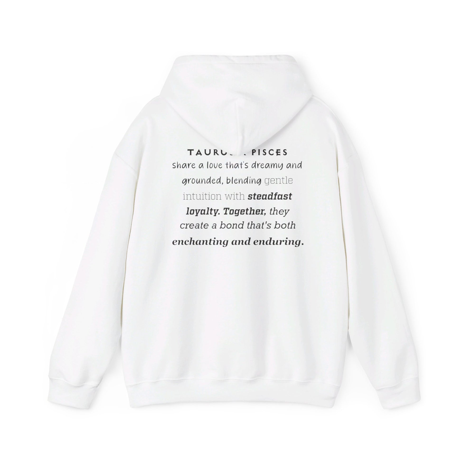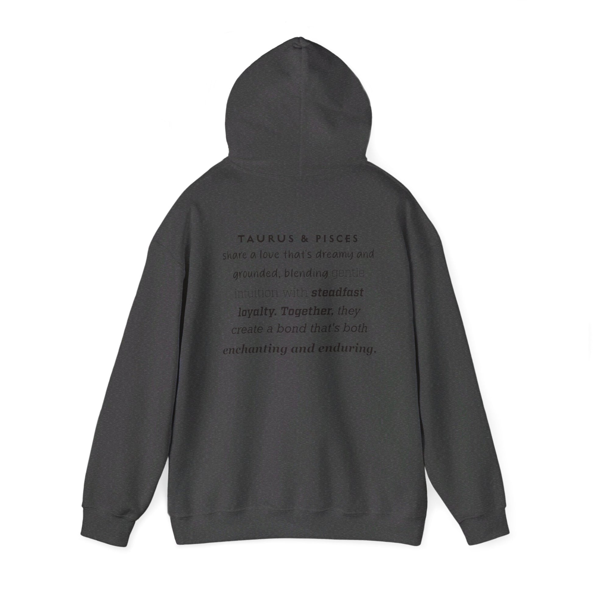 This unique Pisces and Taurus design with a love descriptionn on the back of the hoodie is perfect for any love relationship. The cozy feel and warmth of this medium-heavy fabric hoodie will keep you comfortable on chilly days. Ideal for astrology enthusiasts looking to showcase their love connection, this hoodie is a great addition to your casual wardrobe.