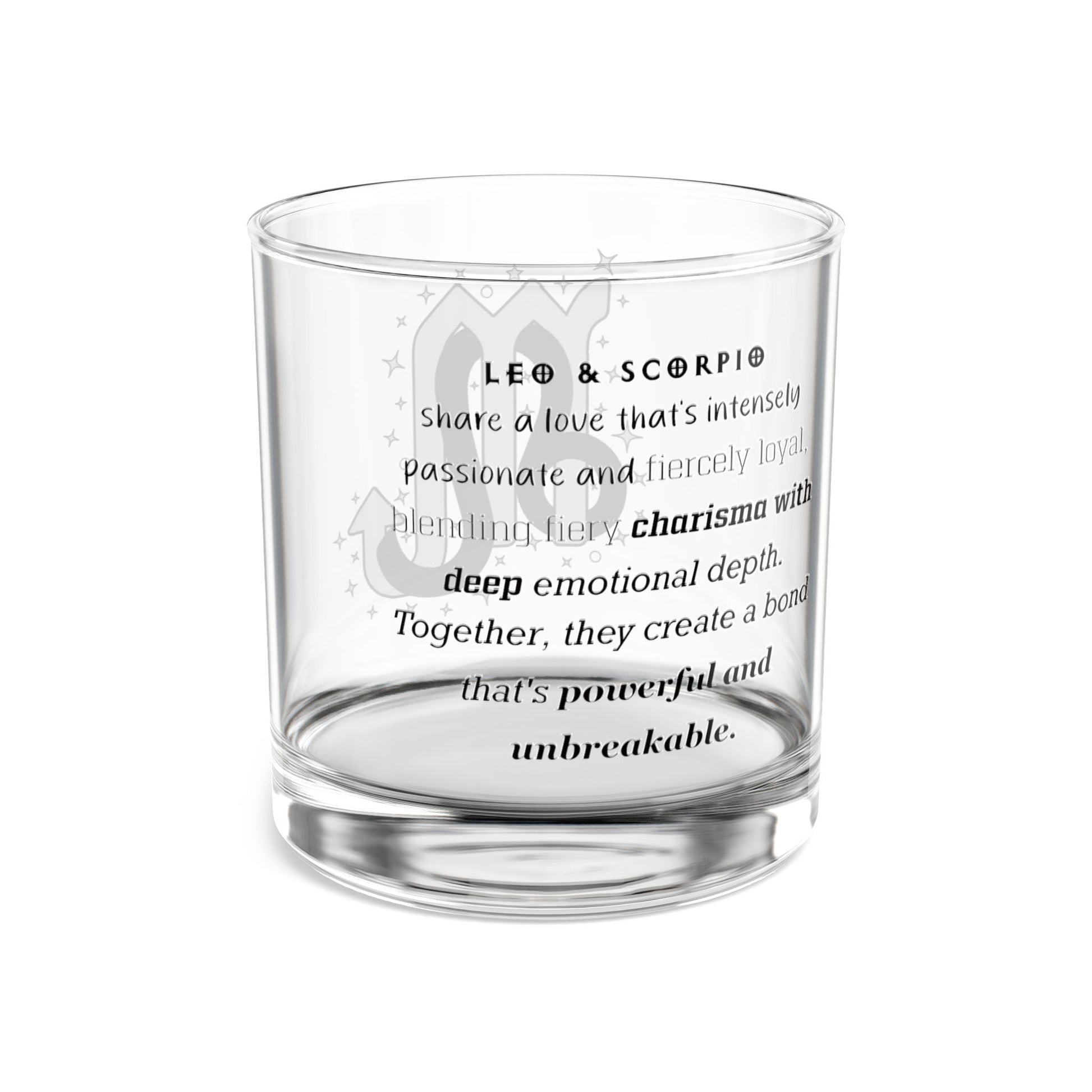Leo and Scorpio Rocks Glass, 10oz with Love Description
