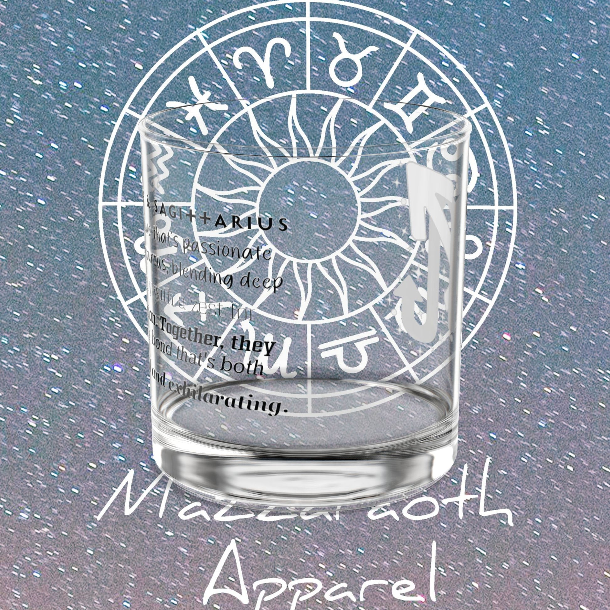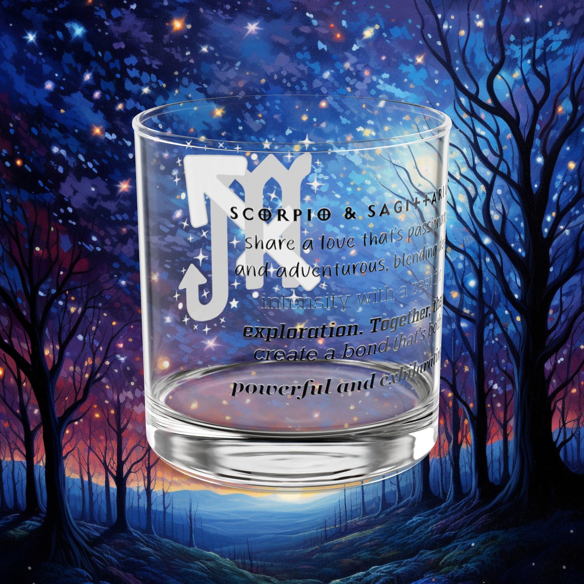 This Scorpio Sagittarius rock glass is perfect for astrology lovers. Featuring a modern and elegant design with a wraparound print, this 10oz glass showcases vibrant colors matching your craziest designs. Made of clear tempered glass, BPA-free, and hand-wash only, this glass is a great addition to your drinkware collection or a unique gift for special occasions like birthdays or housewarmings.
